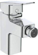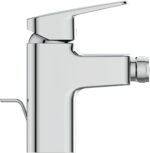 CERAPLAN Смеситель для биде с металлическим донным клапаном, система монтажа EASY-FIX (облегченный монтаж), гибкая подводка G3/8″, картридж FirmaFlow 38 мм с функцией HWTC (ограничение максимальной температуры горячей воды), металлическая рукоятка с индикаторами горячей / холодной воды, аэратор на шаровом шарнире с ограничением потока 5 л/мин