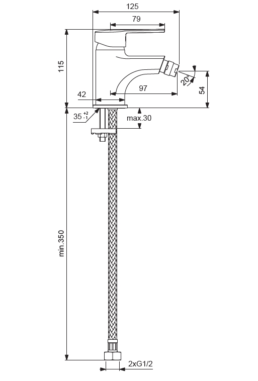 VIDIMA LOGIK Однорукоятковый смеситель для биде, система монтажа EASY-FIX (облегченный монтаж), литой излив 97 мм, аэратор Perlator на шаровом шарнире (поворотный), керамический картридж 35 мм, металлическая рукоятка с индикаторами горячей / холодной воды, гибкая подводка G1/2″, шланги стандартной длины 400 мм