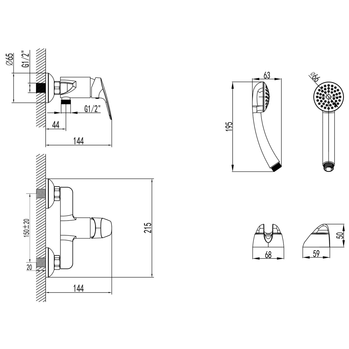 Размер ручного душа мм