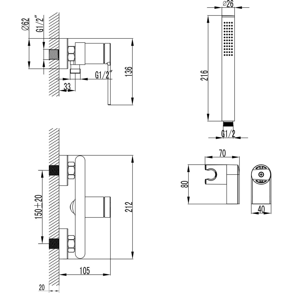 Размер ручного душа мм