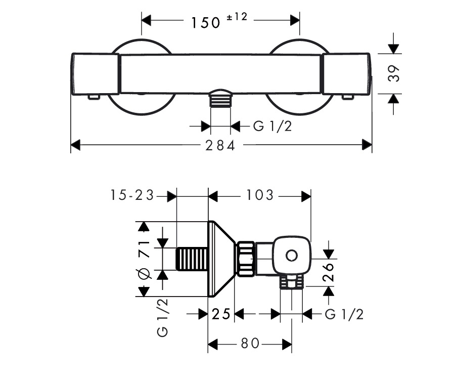 Штихмас (монтажный размер): 150±12 мм;