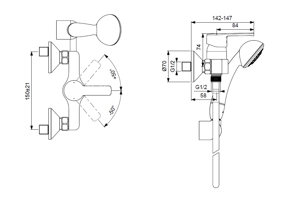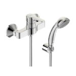 VIDIMA UNO Настенный смеситель для душа, монтаж на стандартных эксцентриках (в комплекте: эксцентрики, металлические отражатели, уплотнительные прокладки), керамический картридж 35 мм, металлическая рукоятка с индикаторами горячей / холодной воды, душевой гарнитур в комплекте (душевая лейка 70 мм, металлический шланг 1500 мм, держатель для лейки)