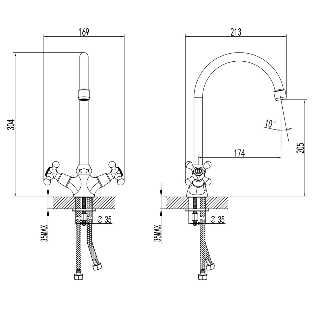 Смеситель для кухни Azario керамическая кран-букса, хром AZ-HU245899