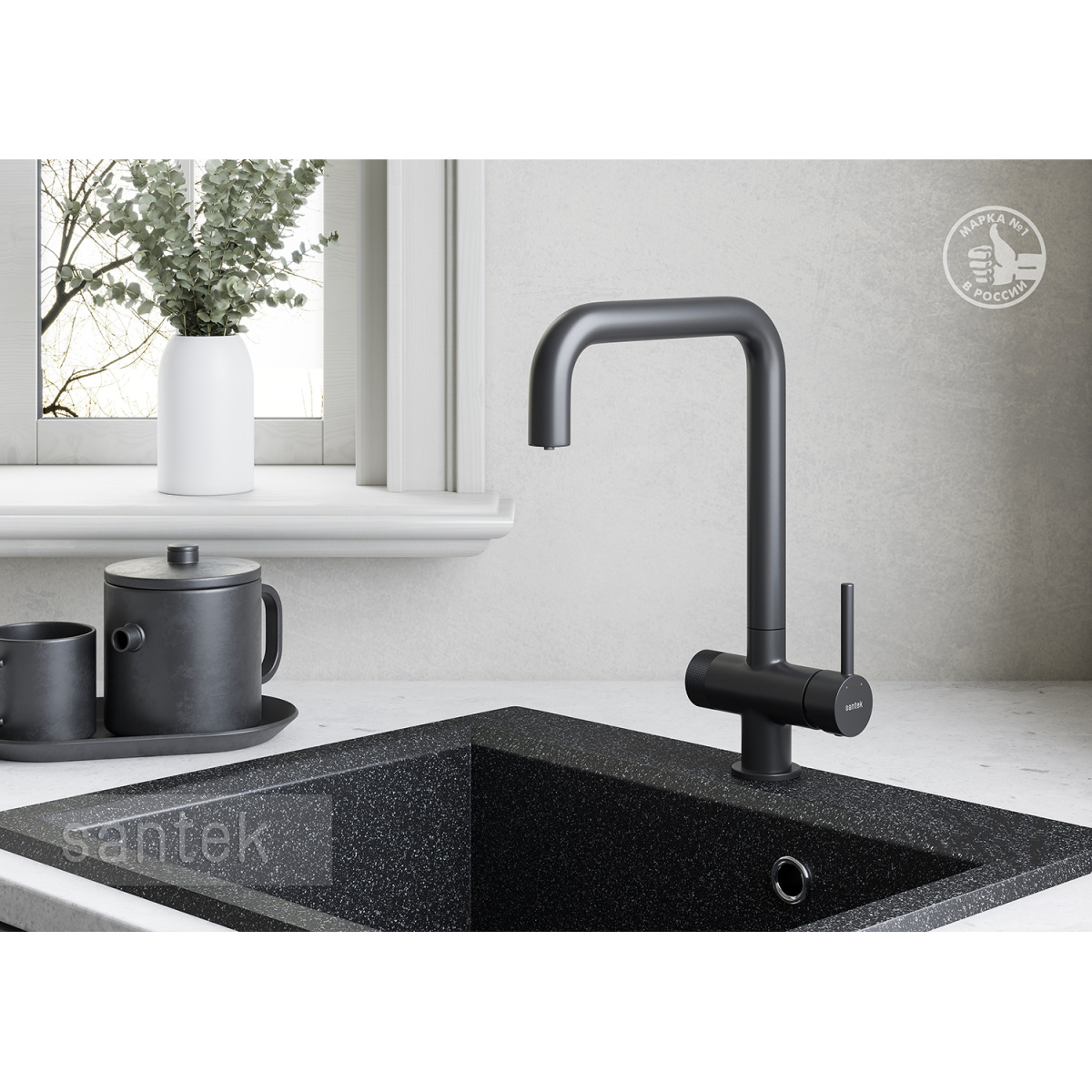 Смеситель для кухни Santek Тесио с подключением к фильтру для воды, керамический картридж, черный ма WH5A43012N001