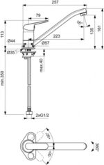 VIDIMA FINE Смеситель для кухонной мойки, система монтажа EASY-FIX (облегченный монтаж), литой поворотный излив, угол поворота 360˚, аэратор Perlator, керамический картридж 35 мм, металлическая рукоятка с индикаторами горячей / холодной воды, гибкая подводка G1/2″, шланги стандартной длины 400 мм, без донного клапана