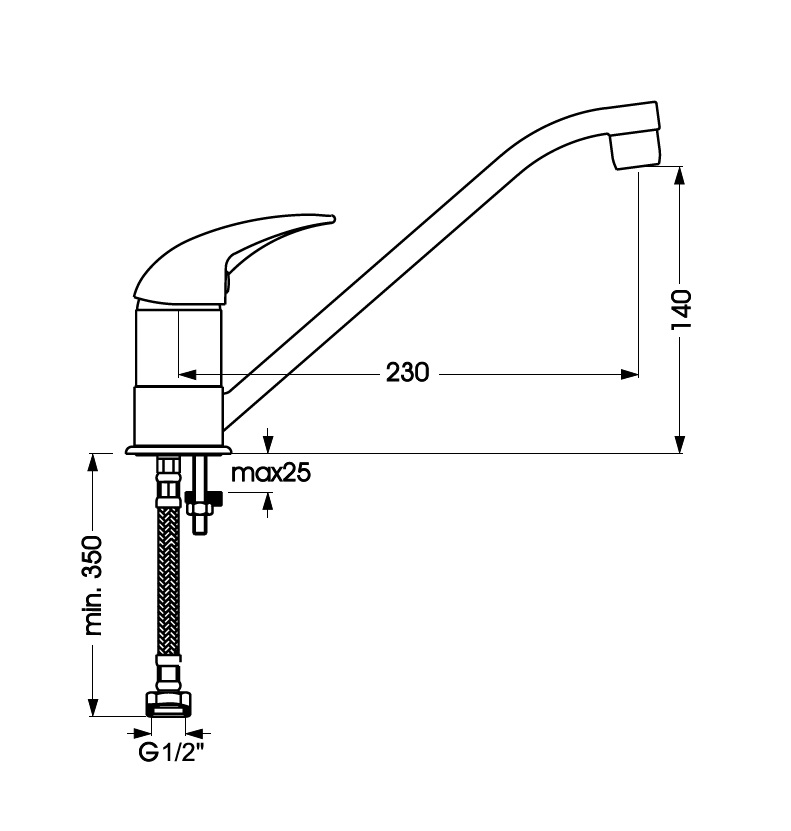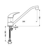 ORION Смеситель для кухонной мойки, система монтажа EASY-FIX (облегченный монтаж), литой поворотный излив 230 мм, угол поворота 360˚, аэратор Perlator, керамический картридж 35 мм, металлическая рукоятка с индикаторами горячей / холодной воды, гибкая подводкая G1/2″