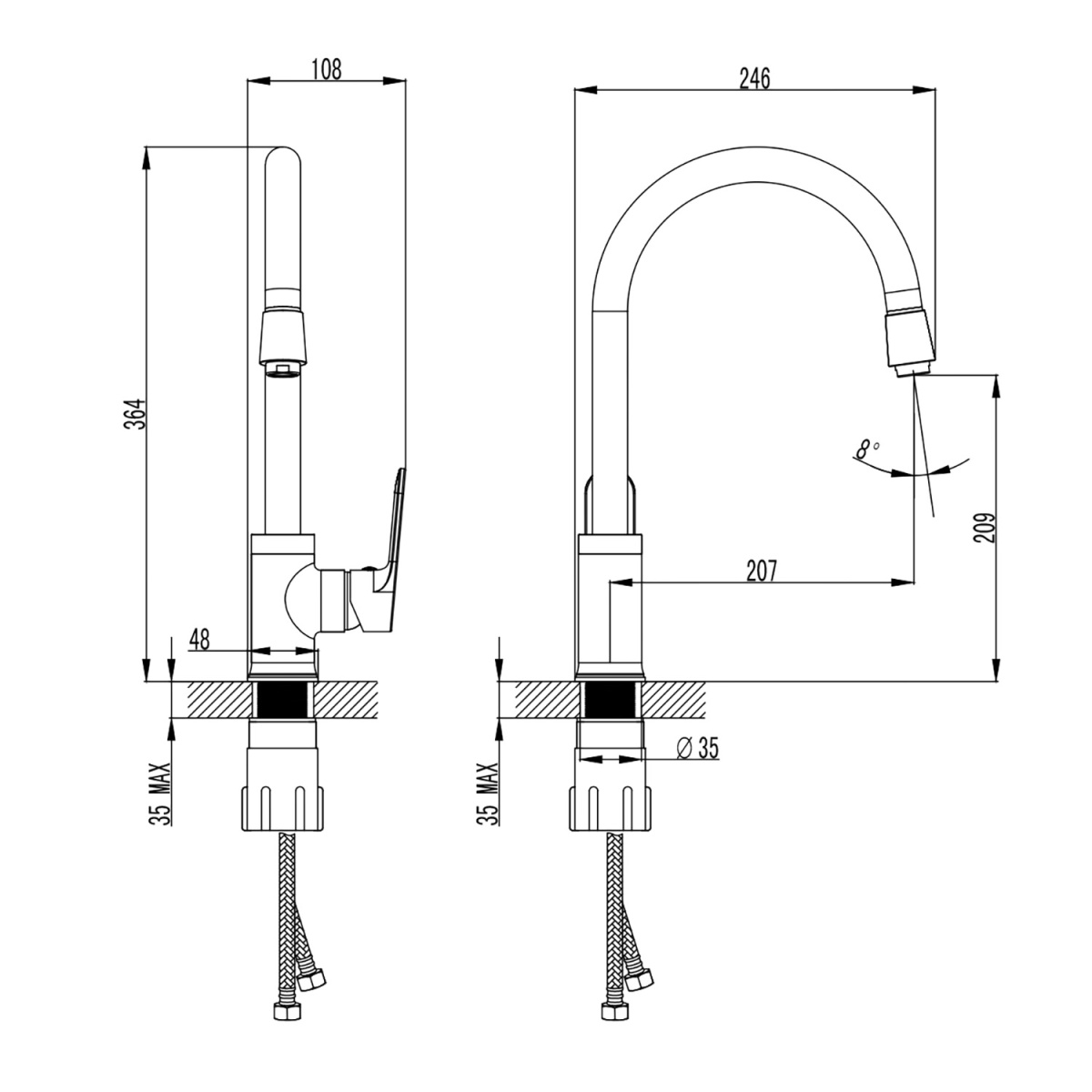 Смеситель для кухонной мойки Azario ELVIS поворотный излив, керамический картридж, хром AZ-WWK568155C