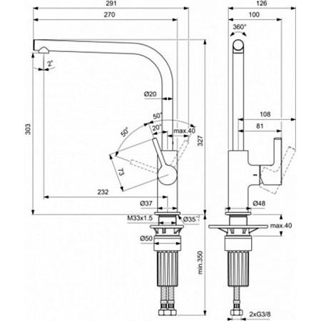 Смеситель для кухонной мойки GUSTO с высоким трубчатым изливом L-типа, хром BD418AA