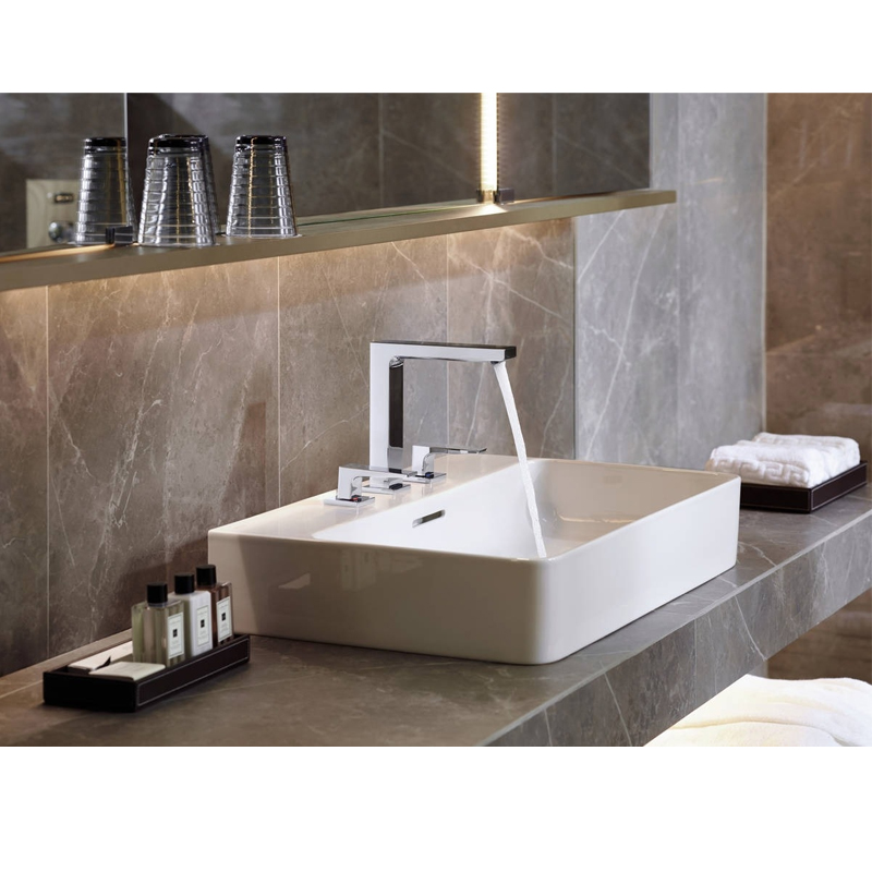 Смеситель для раковины 160, Metropol на 3 отверстия, с рычаговыми рукоятками, со сливным клапаном Pu 32515000