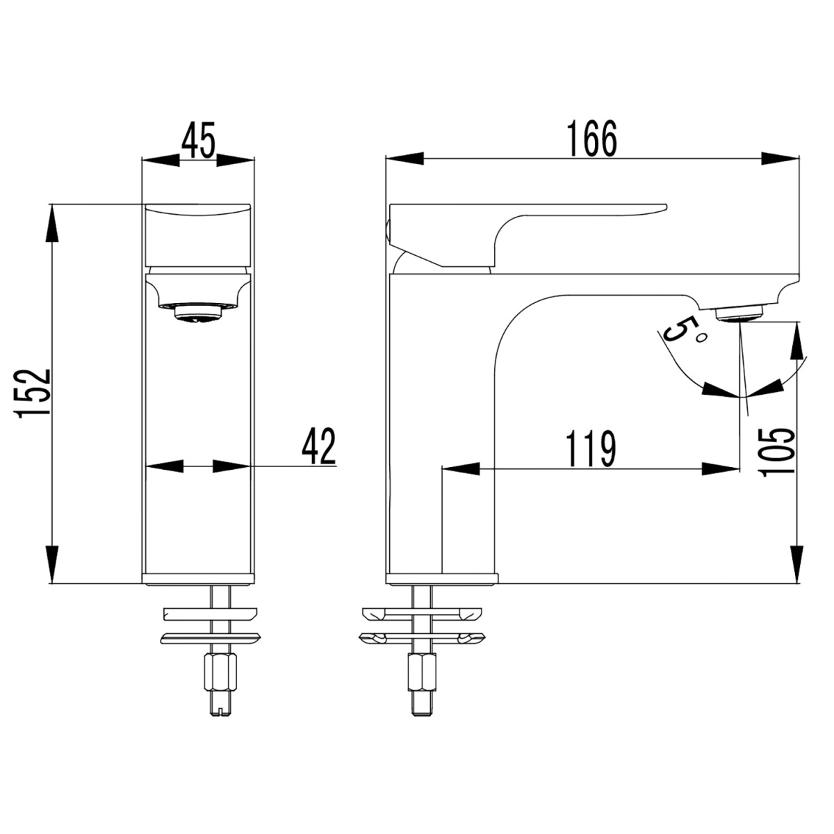 Смеситель для раковины Azario ASHER керамический картридж, без донного клапана, хром AZ-VNN168311C