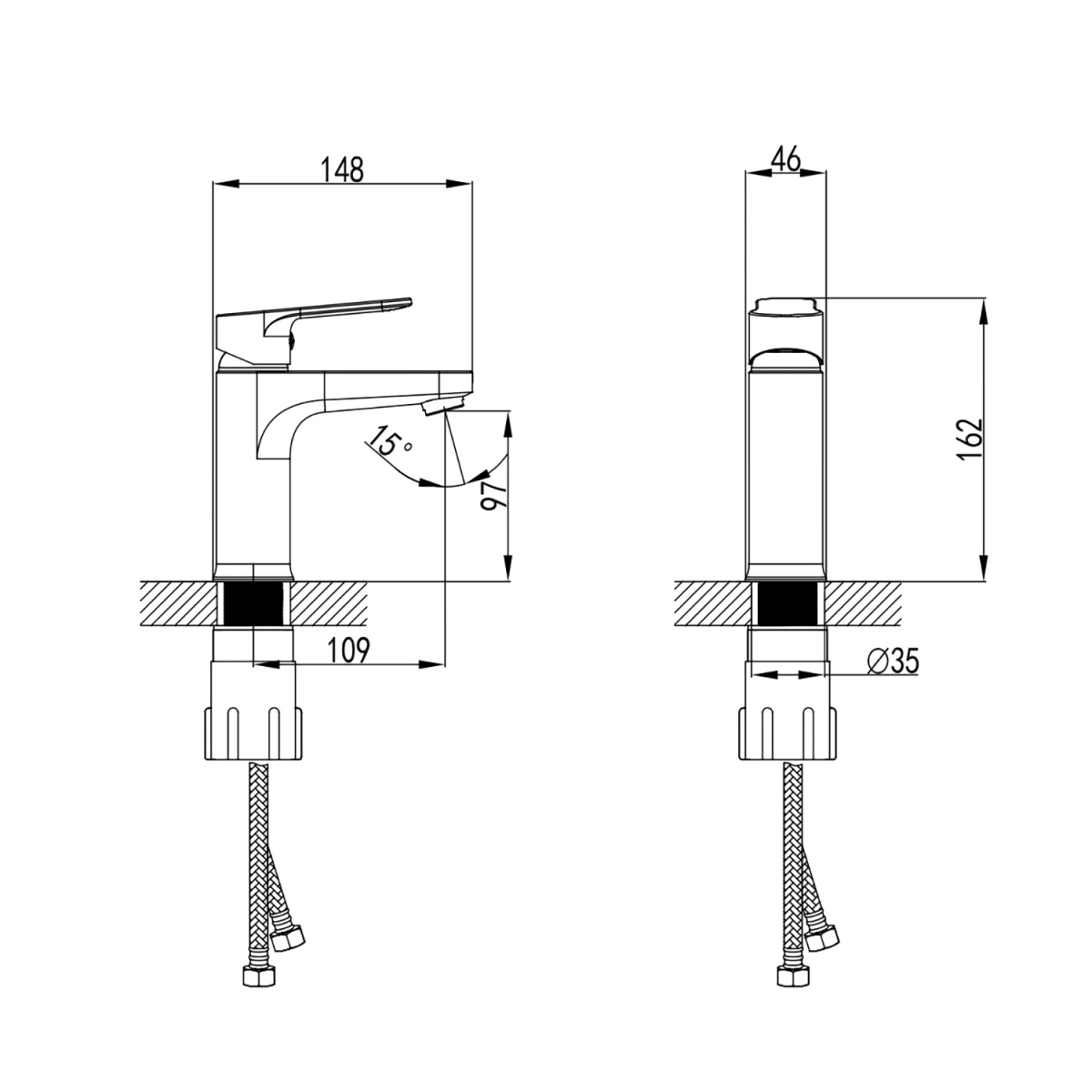 Смеситель для раковины Azario ELVIS без донного клапана, хром AZ-WWK168155C