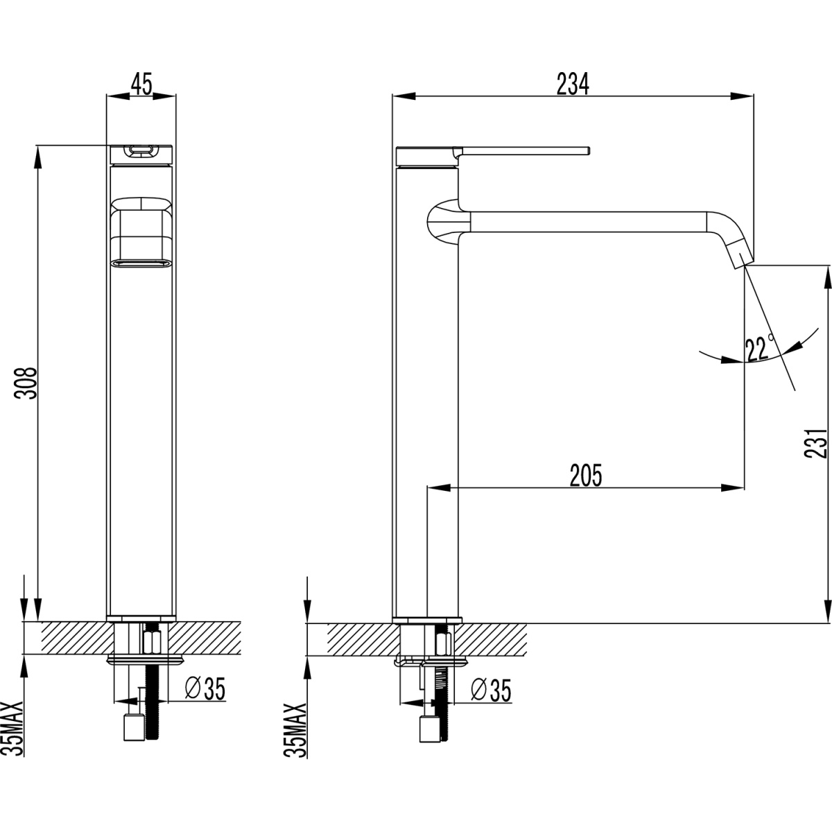 Смеситель для раковины-чаши Azario VINCENTE высокий, керамический картридж, без донного клапана, гра AZ-VPV168R26AJ