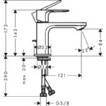 Смеситель для раковины Hansgrohe Rebris E со сливным гарнитуром, керамический картридж, хром 72550000