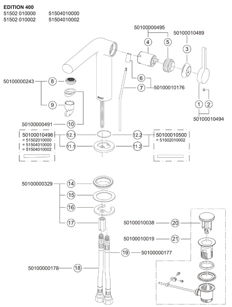 KEUCO EDITION 400 51502010000 Однорычаговый смеситель для умывальника 150