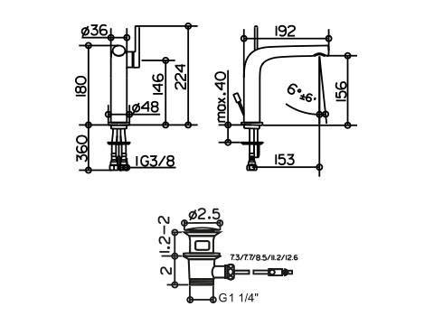 с гарнитурой для слива и донным клапаном 1 1/4 дюйма,