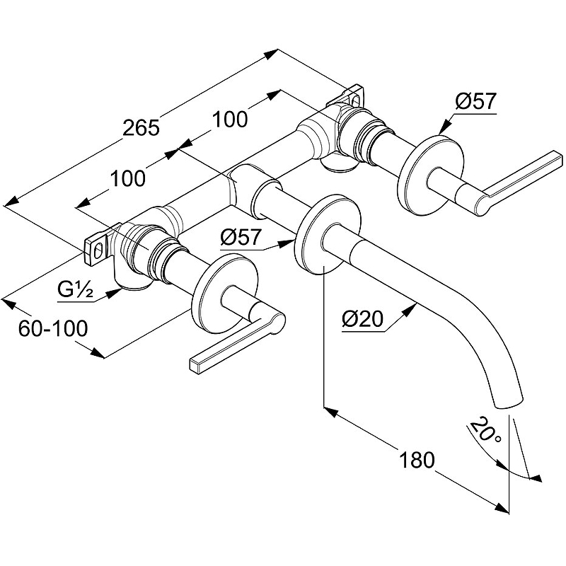 Настенный смеситель для раковины Kludi Nova Fonte Puristic 201443915 двухрычажный.