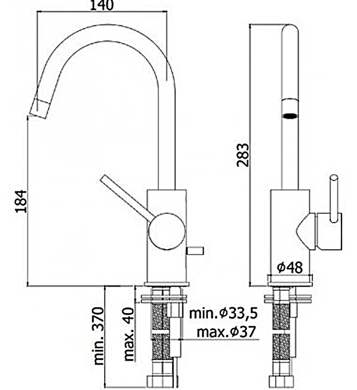 Смеситель для раковины с поворот.изливом без д/к, Черный матовый