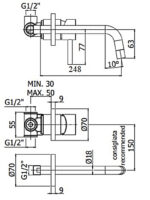 Смеситель для раковины встраиваемый, накладки диам.70мм, излив 245мм, Черный матовый