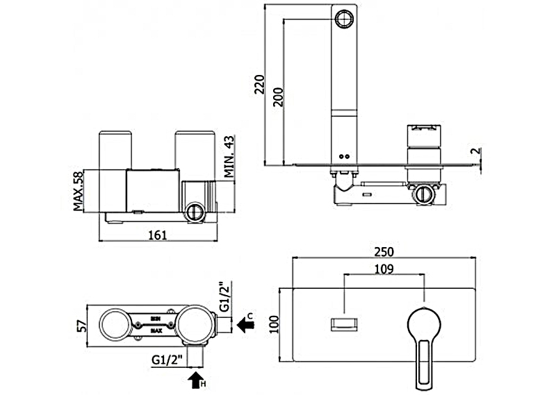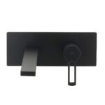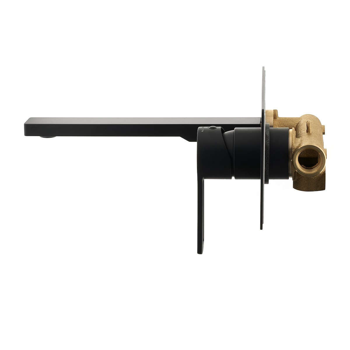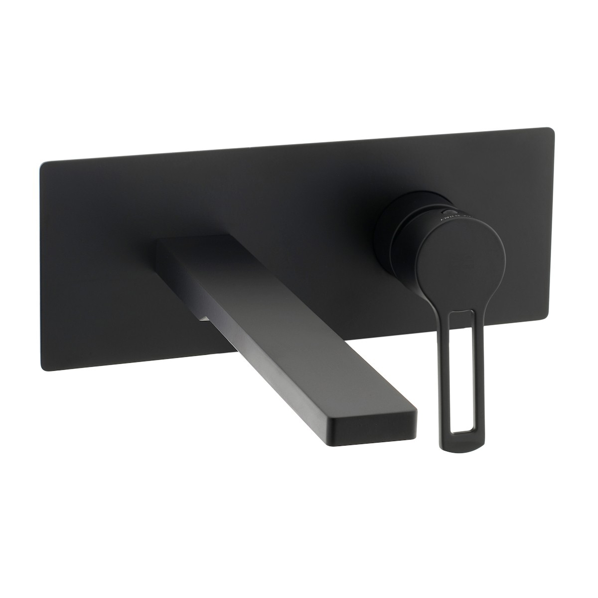 Смеситель для раковины встраиваемый с изливом 200мм с накладкой из нерж. Стали 250х100мм, Черный матовый