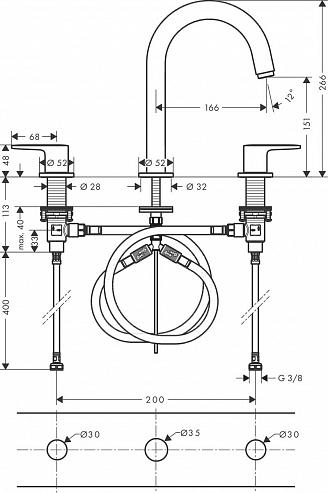 Смеситель для раковины Vernis Blend на 3 отверстия, со сливным гарнитуром, матовый черный 71553670