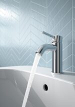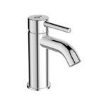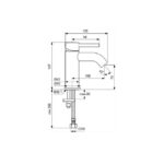 CERALINE Однорукоятковый смеситель для умывальника, картридж 35 мм с функцией HWTC (ограничение максимальной температуры горячей воды) (ВНИМАНИЕ – с марта 2021 замена на 28mm FirmaFlow), гибкая подводка G3/8″, система монтажа EASY-FIX (облегченный монтаж), аэратор Cashe с ограничением потока 5 л/мин., металлическая рукоятка с индикаторами горячей / холодной воды, без донного клапана