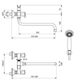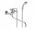VIDIMA PRACTIC Смеситель для ванны/душа, с керамическим переключателем, монтаж на стандартных эксцентриках (в комплекте: эксцентрики, металлические отражатели, уплотнительные прокладки), трубчатый поворотный излив, длина излива 320 мм, угол поворота 360˚, аэратор Perlator, керамические кранбуксы производства Германии с поворотом 180˚, пластиковые рукоятки, индикатор холодной/горячей воды, переключение ванна/душ – ручной керамический переключатель, душевой гарнитур в комплекте (душевая лейка Ø70 мм, металлический шланг 1500 мм, держатель для лейки)