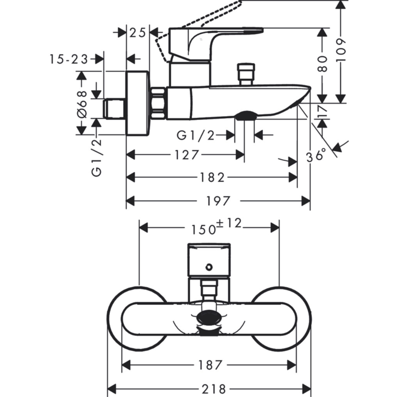 Смеситель для ванны Hansgrohe Rebris E керамический картридж, хром 72450000