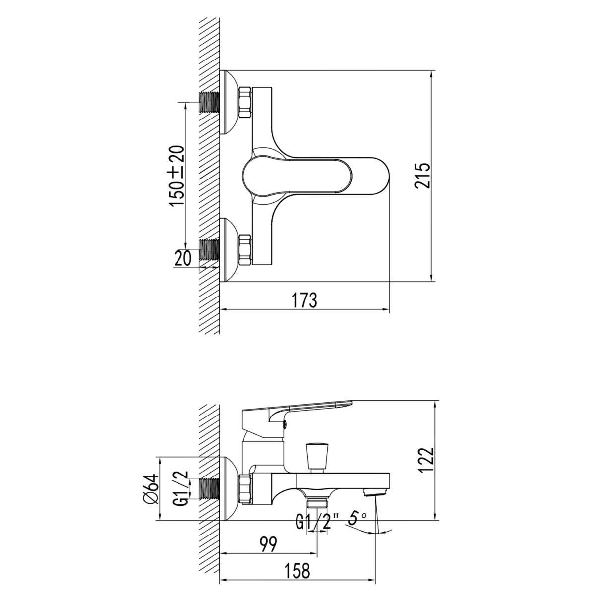 Смеситель для ванны и душа Azario ELVIS с ручным душем, керамический картридж, черный матовый AZ-WWK238155PA