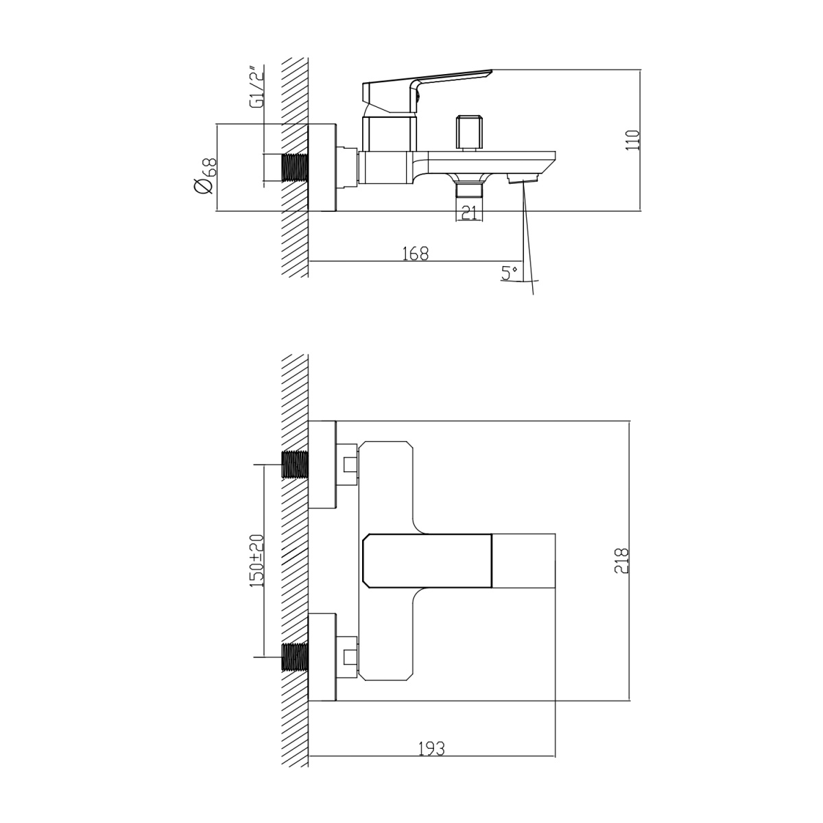 Смеситель для ванны и душа Azario HARDCORE с ручным душем, хром AZ-VKM238277C