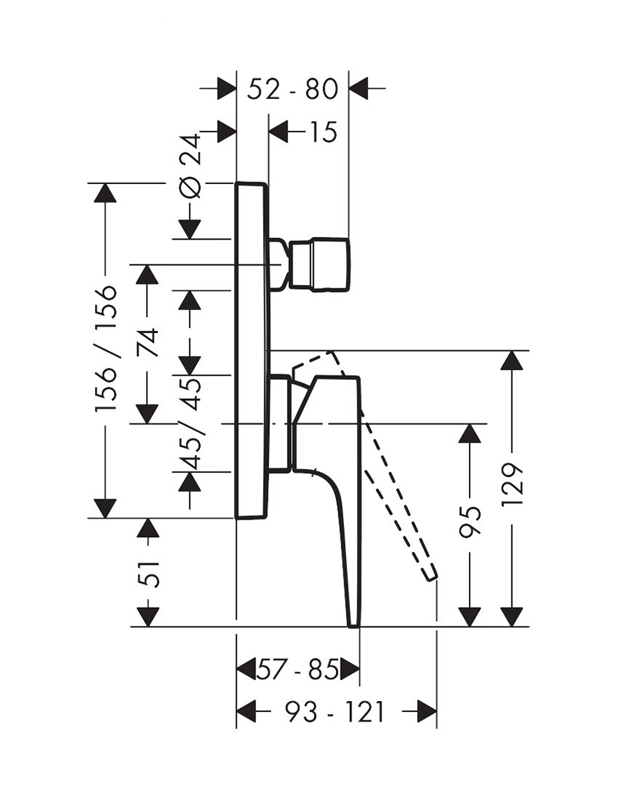 Смеситель для ванны Metropol, однорычажный, с рычаговой рукояткой, со встроенной защитной комбинацие 32546990