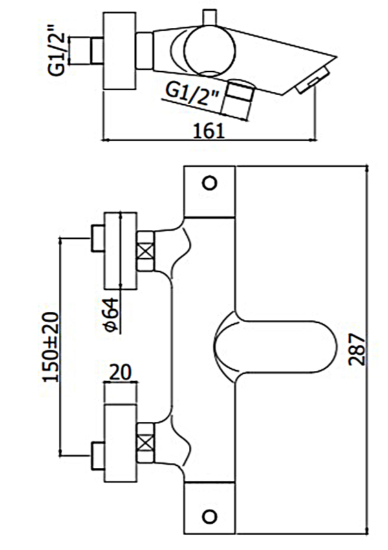 Смеситель для ванны термостатический без душ.набора. Черный матовый