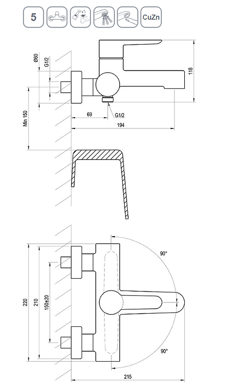 динственный смеситель на рынке с уникальным решением системы управления. Переключатель ванна / душ, встроенный в корпус смесителя, позволил достичь чистой универсальной формы, которая украсит любую ванную комнату. Регулировка температуры воды и переключение на ванну/душ осуществляется простым поворотом рычага влево или вправо.