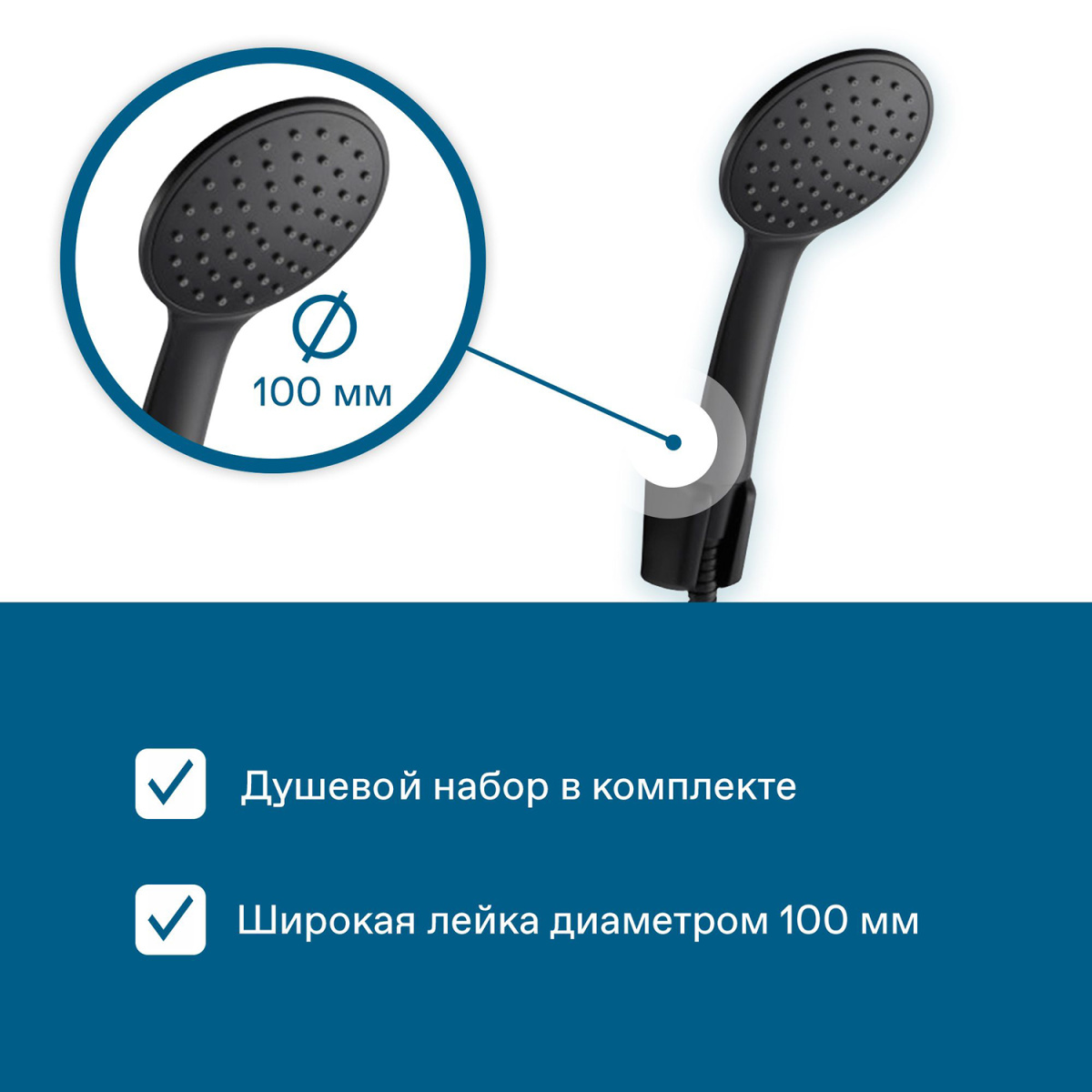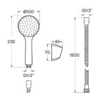 – душевой набор в комплекте: лейка ø100 мм; шланг 1.5 м, настенный держатель;