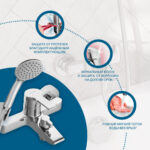 – поворортный керамический переключатель ванна/душ: надежное и удобное переключение режимов потока воды независимо от давления в системе водопровода;
