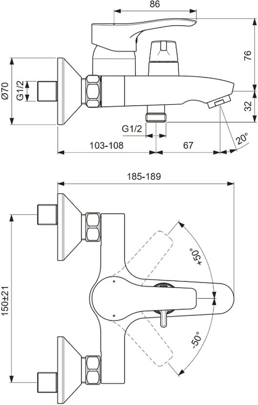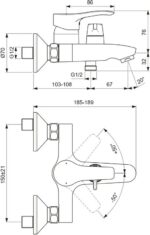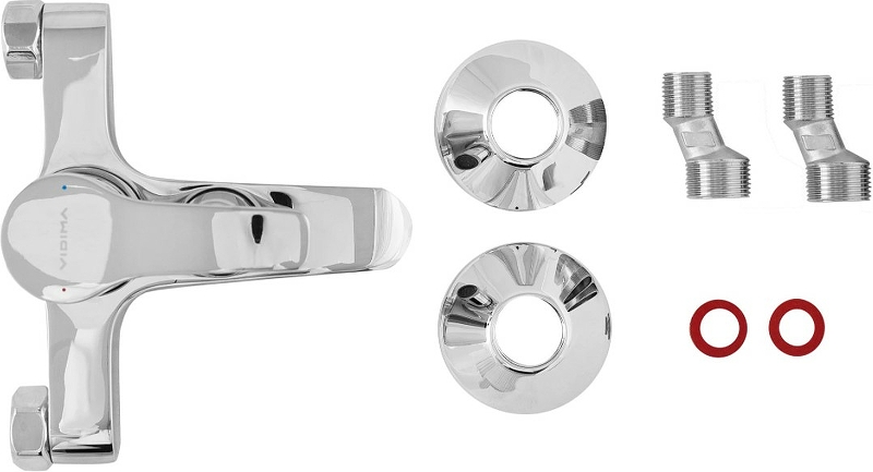 VIDIMA MELOY Настенный смеситель для ванны/душа с керамическим переключателем, монтаж на стандартных эксцентриках (в комплекте: эксцентрики, металлические отражатели, уплотнительные прокладки), металлическая рукоятка с индикаторами холодной/горячей воды, керамический картридж 35 мм с функцией HWTC, без обратного клапана, ручной керамический переключатель (позволяет использовать функцию “душ” даже при очень низком давлении воды)