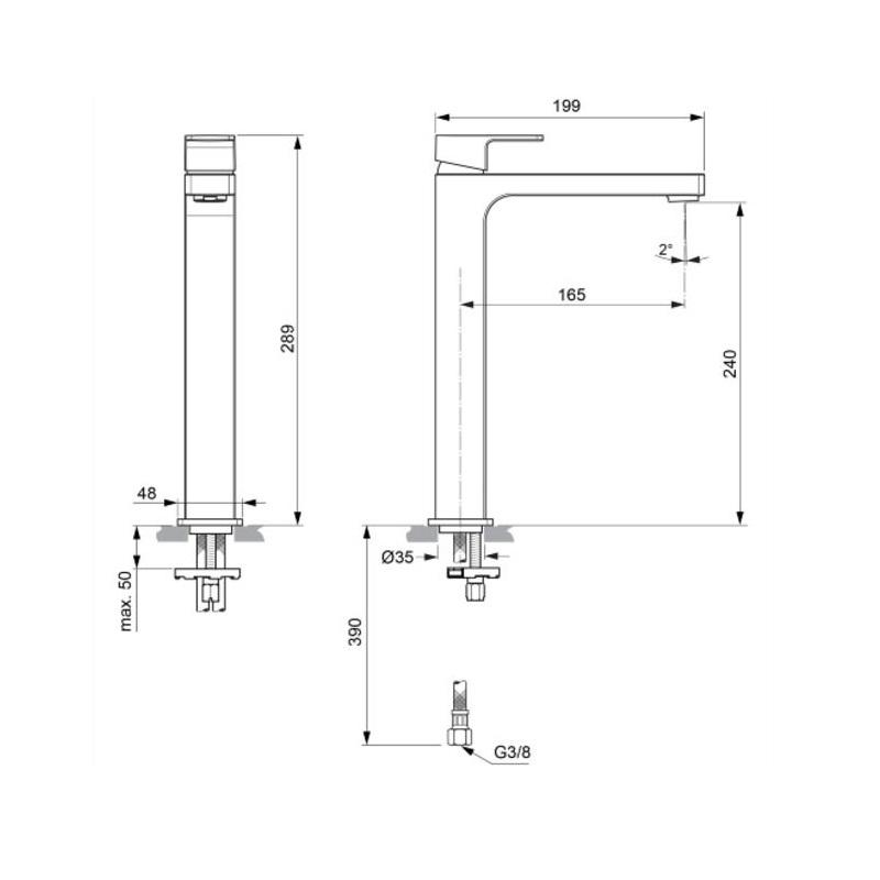EDGE Vessel Однорукоятковый смеситель для умывальника, керамический картридж 25 мм без функции HWTC (с 1 кв.2021 – керамический картридж 28 мм FirmaFlow с функцией HWTC), без функции CLICK, гибкая подводка G3/8″ (антибактериальные шланги PEX), Система облегченного монтажа EASY-FIX (облегченный монтаж) аэратор Perlator с ограничением потока 5 л/мин., металлическая рукоятка с индикаторами горячей / холодной воды, без донного клапана