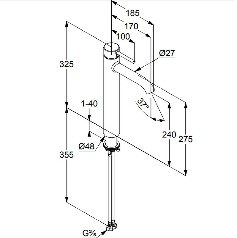 Смеситель KLUDI BOZZ для раковины – чаши, керамический картридж, хром 382860576