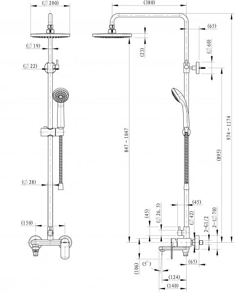Верхний душ: 200 мм ABS-пластик