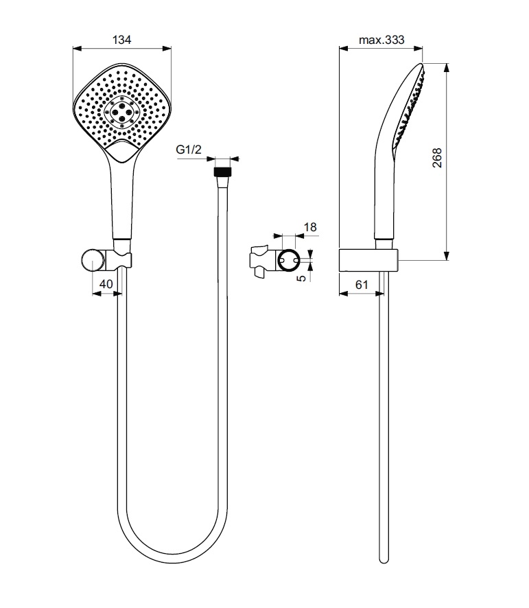 Душевой набор Ideal Standart IDEALRAIN с настенным держателем EVO JET DIAMOND XL3 B1766AA