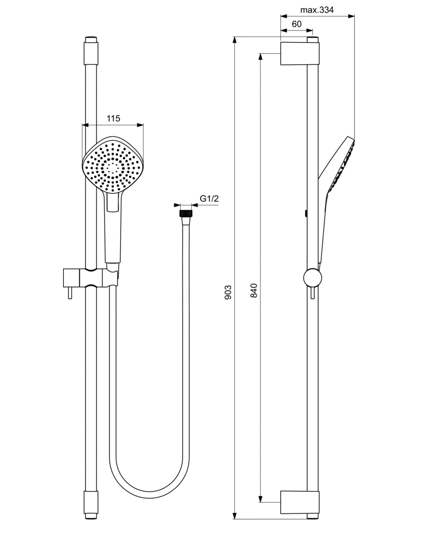 IDEALRAIN EVO DIAMOND L3 Душевой гарнитур со штангой, диаметр лейки Ø110 мм, количество функций: 3, режим струи: Rain (Дождь), Smart Rain (Бодрящий дождь), Massage (Массаж), легкоочищаемая лейка, ограничение потока 8 л/мин, шланг 1750 мм с силиконовым покрытием IDEALFLEX®, штанга 900 мм с регулируемыми кронштейнами, Ø20 мм, металлический слайдер, фиксатор высоты, регулировка наклона лейки