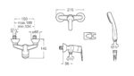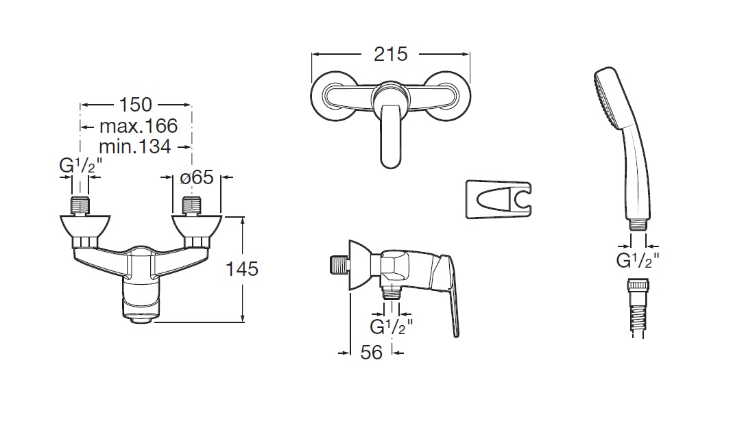 Монтируемый в стену смеситель для душа с ручным душем, гибким шлангом 1,50 м и поворотным держателем.
