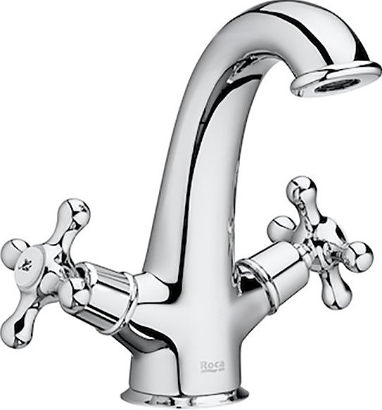 Металлическая рукоятка с индикаторами горячей и холодной воды.