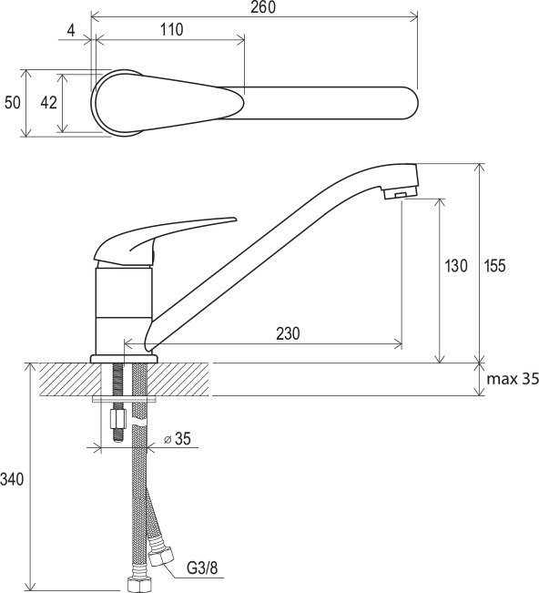 соединительные шланги: гибкий 350 мм, диаметр G3/8