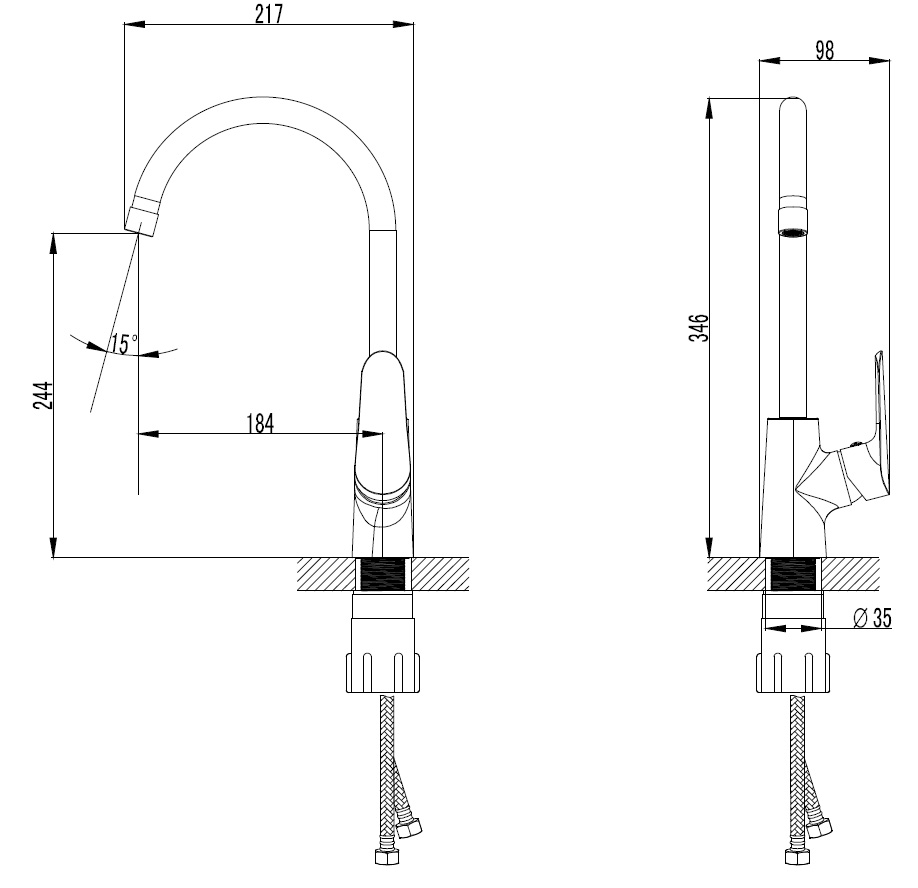Смеситель для кухонной мойки AZARIO CAMPO керамический картридж, хром AZ-KX568275C