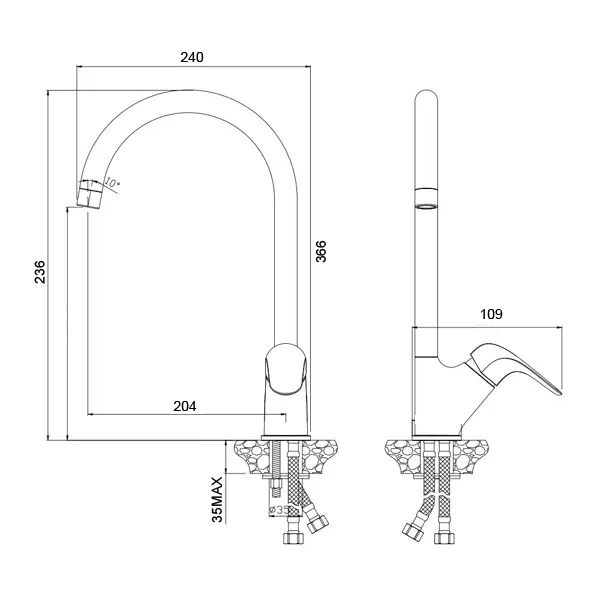 Смеситель для кухонной мойки AZARIO EVORA керамический картридж, хром AZ-WKE56266C