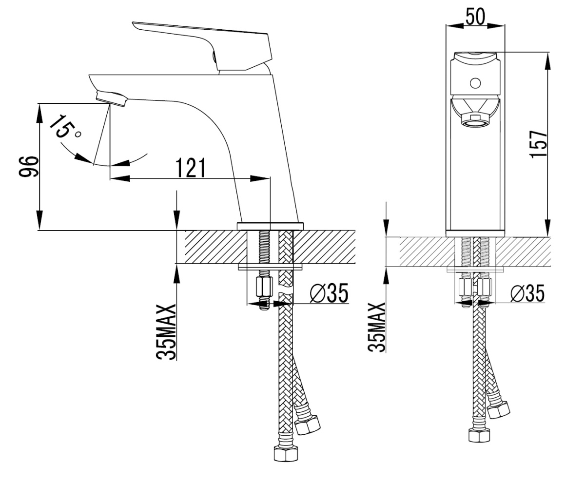 Смеситель для раковины AZARIO AVILLA керамический картридж, хром AZ-WKG168044C