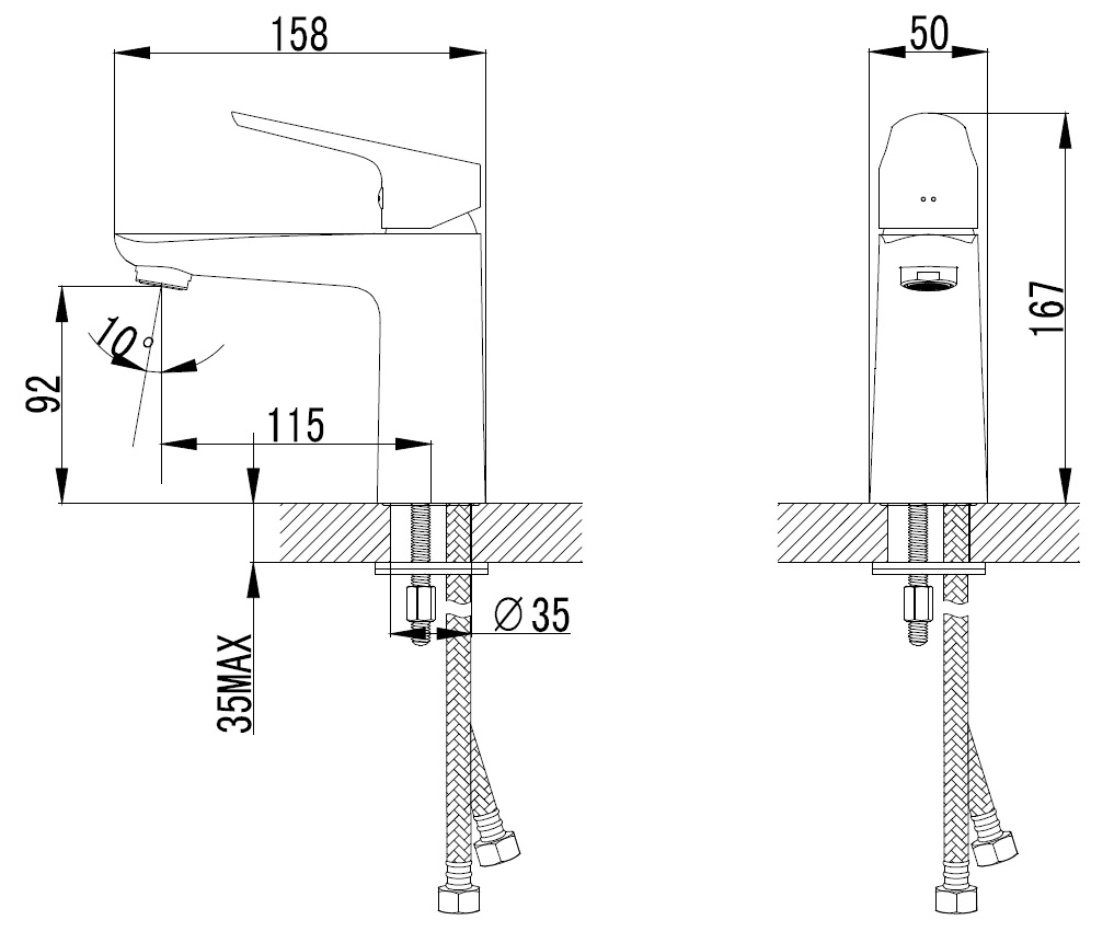 Смеситель для раковины AZARIO CAMPO керамический картридж, хром AZ-KX168275C