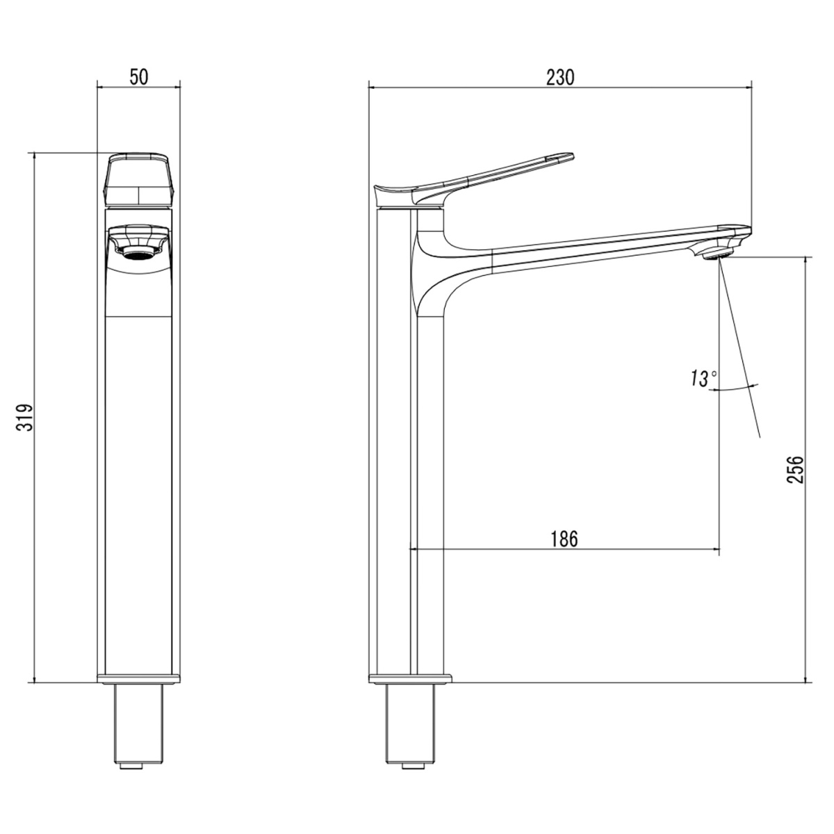 Смеситель для раковины-чаши Azario LINES высокий, керамический картридж, без донного клапана, хром AZ-VPU168R25C