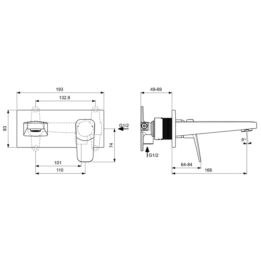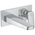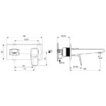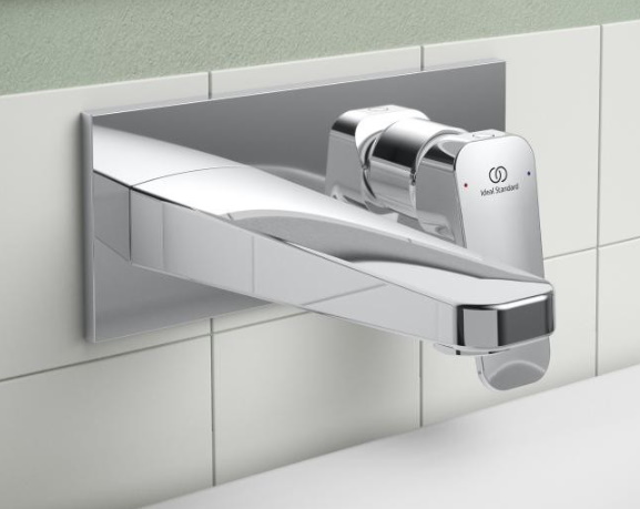 CERAPLAN Настенный смеситель для умывальника, для монтажа со встраиваемым комплектом A1313NU (заказывается дополнительно), литой излив 180 мм, металлическая накладка, аэратор с ограничением потока 5 л/мин, картридж FirmaFlow 28 мм с функцией HWTC (ограничение максимальной температуры горячей воды), металлическая рукоятка с индикаторами горячей / холодной воды