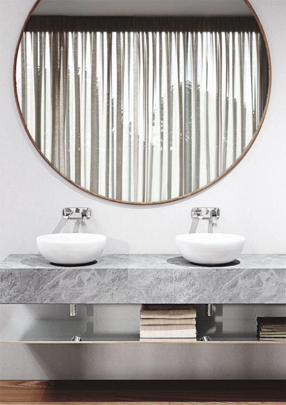 Излив длиной 18.5 см оснащен аэратором (M 24 x 1), который смешивает воду с воздухом, делая ее более мягкой, сокращается расход воды (6 л/мин).